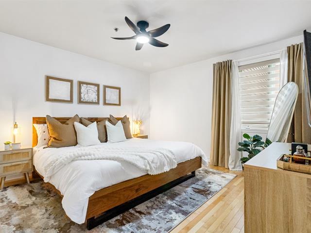 Bright and spacious 2-bedroom corner unit condo with an open-concept living and dining area leading to a private balcony. Features an updated kitchen, large master bedroom, versatile second bedroom, and a bathroom with separate shower and tub. Includes a separate laundry room, indoor parking, and storage locker. Located in a quiet, well-maintained building across from a park, just 6 minutes from Radisson Metro and close to schools, shopping, hospitals, parks, and highways 40 & 25. (54401833)