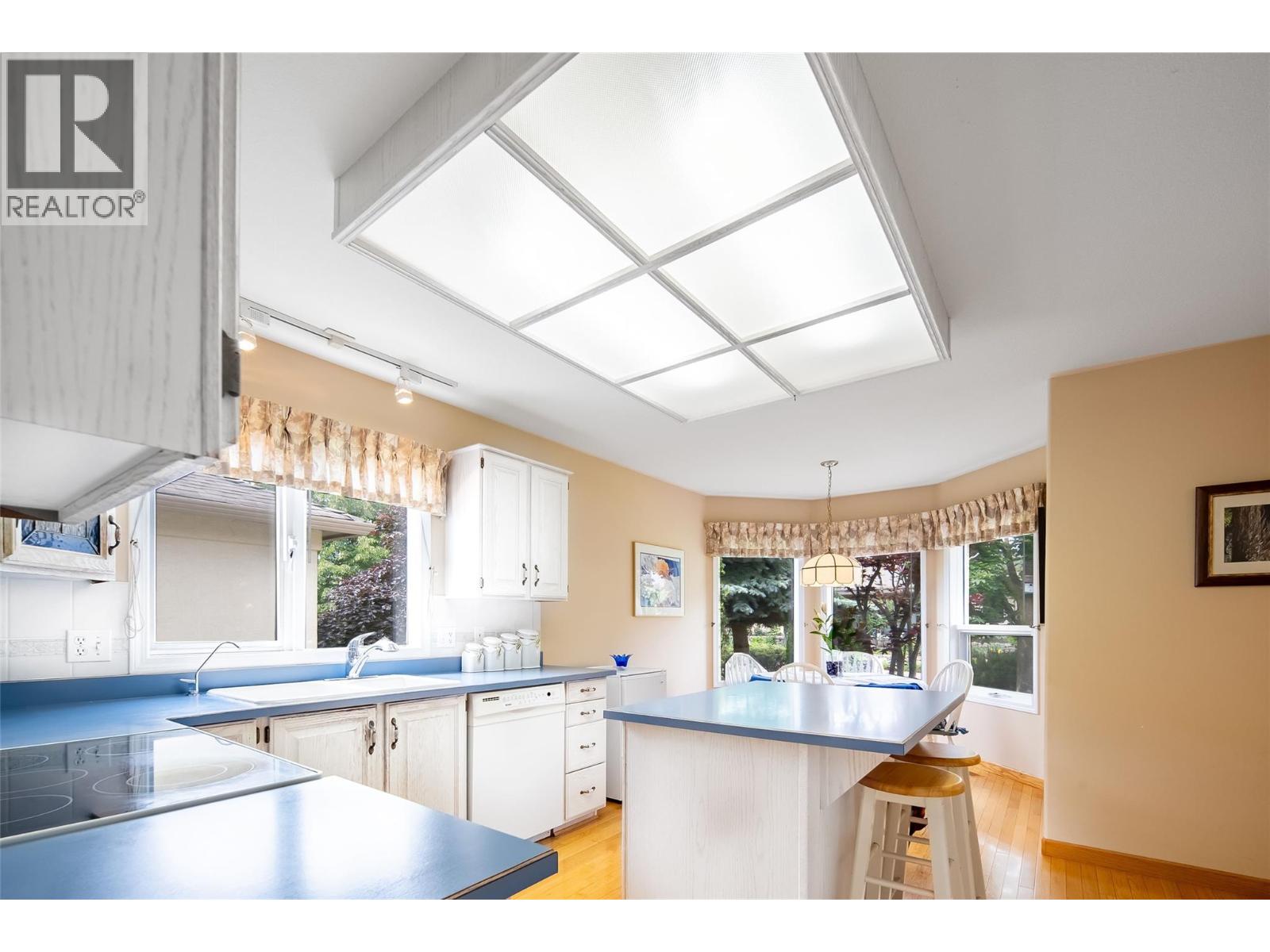 Experience the convenience of one-level living in this spacious standalone home in Sandpointe, ideally situated to capture afternoon sun and the soothing sounds of the backyard waterway with small rapids. Meticulously maintained, this rare home offers an excellent and versatile floor plan featuring a generous sized primary bedroom, an additional bedroom, a dedicated home office, a separate den, a formal dining room, and a formal living room—providing exceptional space for entertaining and having separate spaces to relax. The kitchen features a center island and a breakfast nook with bay windows overlooking the water. A sliding glass door from the kitchen leads to a private patio with peaceful views, perfect for grilling & dining, with an awning for shade. For added ambiance, the den has a gas fireplace. The primary bedroom offers ample space for a king-sized bed, full furniture set, a seating area, with an adjoining 4-piece bathroom. The patio provides views of the well-manicured lawns. A new furnace was installed in 2023, ensuring comfort and efficiency. This home includes a two-car garage and is located in one of Kelowna’s premier 55+ gated communities, Sandpointe. Residents enjoy an exceptional clubhouse with a games room, library, fitness center, and indoor and outdoor pools. Conveniently located in Glenmore, it's within walking distance to medical facilities, groceries, and Brandt’s Creek Greenway. Enjoy the best of Sandpointe living in this beautifully appointed home. (39701420)
