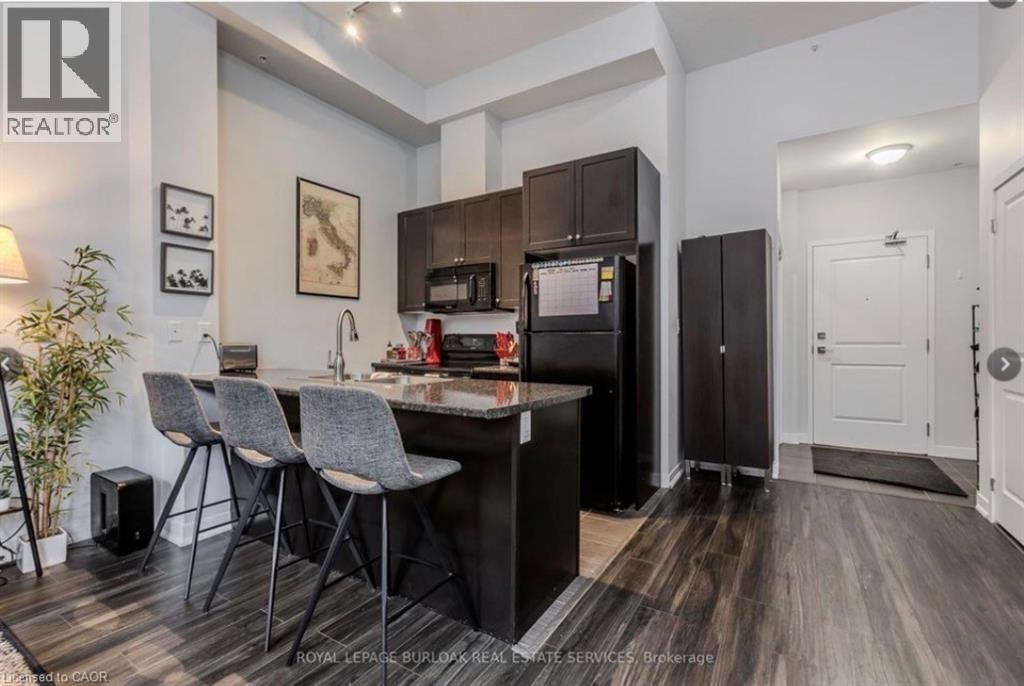 Welcome to City Square, a stylish and modern condo in Hamilton’s sought-after Durand neighbourhood! This stunning 1-bedroom, 1-bathroom unit offers 11 ft ceilings and oversized windows, flooding the open-concept space with natural light. The contemporary kitchen features a peninsula with a breakfast bar, a pantry, and sleek finishes, while the spacious bedroom offers private balcony access. The modern bathroom boasts a glass and tile shower with ample counter space. Enjoy the convenience of in-suite laundry and a bright, airy living space. The City Square building offers hotel-like amenities, including an exercise room, party room, media room, yoga room, and a two-floor terrace with BBQs, bike storage, and lockers. Located just steps from shopping, dining, and public transit, this condo is also close to St. Joseph’s Hospital and the Hunter Street GO Station—perfect for professionals and commuters. Don't miss this opportunity to live in one of Hamilton’s most vibrant communities! Book your showing today (70129931)