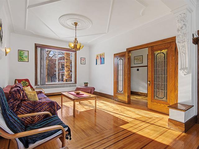 Condo d'exception face au parc Beaubien -- 2 200 pi² sur deux étages Situé au rez-de-chaussée d'un duplex au coeur du quartier Rosemont, ce condo unique de près de 2 200 pi² répartis sur deux étages offre des volumes impressionnants, une luminosité exceptionnelle et un cachet architectural rare. Dès l'entrée, les plafonds de plus de 9 pieds créent une impression de grandeur spectaculaire. Les immenses fenêtres, les planchers de bois, les appliques murales ainsi que les boiseries généreuses confèrent à la propriété une atmosphère chaleureuse, élégante et intemporelle. Suivez moi à l'addenda (51552770)