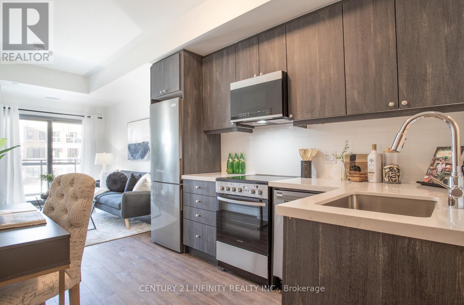 Brand New, Never Lived In! Discover Modo 51, Bowmanville's Exclusive Community Offering Exceptional First-Time Conveniences & Premium Amenities In Clarington's Condo World. This Stunning Building Features A 24-Hour Concierge Desk, A Connected 7th Floor Rooftop Terrace With BBQs, A Fully Equipped Fitness Centre & Yoga Studio, Games Room, Party Room, Library, & A Spacious Resident Lounge Designed For Relaxation & Socializing. Conveniently Equipped With Four Elevators & Two Garbage Chutes, This Building Truly Sets Itself Apart In Clarington. This One-Bedroom Unit With Den/Dining Features Wheelchair Accessible Doors, 9-Foot Ceilings, Quartz Countertops, Upgraded Nebula Sequoia Cabinetry With Ceramic Backsplash & Under-Cabinet Lighting R/I, Along With A Matching Comfort Height Vanity In Restroom & Luxury Vinyl/Ceramic Flooring Throughout. Enjoy An Extra-Large Balcony With Two Walkouts, Including One From The Bedroom. This Condo Also Features Ensuite Laundry, Includes Six Appliances & One Parking Space. With High-Speed Internet Included In The Maintenance Fees There's No Need To Pay Any Extra Bills. Ideally Located Next To The Soon-To-Be-Built GO Train Station, Within Walking Distance To Restaurants, Entertainment, Grocery Stores, Retailers, & More. With Ample Space To Relax And Recharge, The Building's Amenities Are Truly Second To None. Host Gatherings Or Celebrations In One Of The Well-Appointed Multi-Purpose Rooms Or One Of The Multi Level Out Door Common Areas With BBQs & Enjoy Elevated Condo Living At Its Finest. (42087338)