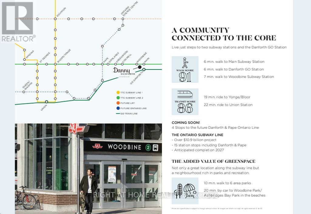 Experience contemporary urban living at Danny Danforth by Gala Developments, ideally located at the vibrant intersection of Danforth & Main. This stylish studio suite offers a smart, open-concept layout with 9' ceilings, a modern kitchen featuring stainless steel appliances, and sleek finishes throughout. Enjoy your own private terrace with a pleasant north exposure, perfect for relaxing after a busy day. Just steps to TTC subway and Main GO Station, plus local shops, cafés, restaurants, parks, and everyday essentials. Residents enjoy premium building amenities including concierge, fully equipped fitness centre, party room, visitor parking, and bicycle storage. A perfect opportunity for professionals seeking convenience, comfort, and connectivity in one of the East End's most desirable communities. (42087597)