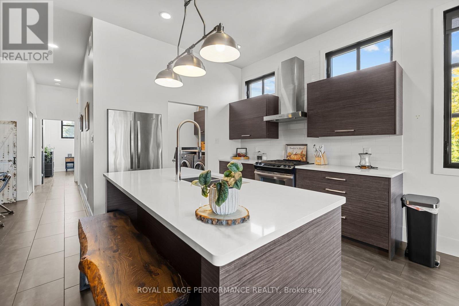 Welcome to 758-B St Joseph Street in Casselman - a truly one-of-a-kind semi-detached showcasing exceptional architecture and thoughtful design throughout. From the moment you arrive, wide ceramic stairs lead you to the impressive second level where soaring 10-foot ceilings and a striking brick feature wall set the tone. The expansive open-concept layout seamlessly blends the kitchen, dining, and living areas, enhanced by oversized windows that flood the space with natural light. Massive patio doors extend your living space outdoors to an oversized covered balcony complete with a natural gas BBQ hookup - the perfect setting for entertaining or relaxing in comfort. The chef-inspired kitchen offers abundant cabinetry, quartz countertops, a generous island ideal for gathering, and a spacious walk-in pantry that conveniently incorporates the laundry area. This level also features 2 spacious bedrooms and ample linen storage. The primary suite is a private retreat, flooded with natural light. The bathroom is spa-like, featuring a luxurious walk-in shower and elegant freestanding soaker tub - designed for ultimate relaxation. On the main level, you'll find a fully heated garage built for versatility, featuring water-resistant interior finishes, 2 floor drains, a full 3-piece bathroom, wet bar, substantial storage space, and 2 garage doors (front and rear access) - offering endless possibilities for hobbyists, entertaining, or additional workspace. A rare opportunity to own a distinctive, design-forward property in the heart of Casselman. Book your showing today! (42087878)