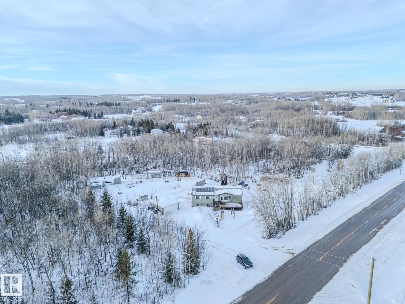 THIS ONE IS SPECIAL!...WALK OUT BASEMENT (with new windows)....MANY OUT-BUILDINGS - GREAT FOR HOBBY FARM!... ..3.9 ACRES...SOLAR PANELS...6 MINUTES TO GIBBONS!...~!WELCOME TO DREAM NOOK!~ The main home is approx 1600 sq ft w/walk out basement & the adjoining house is a 950 sq ft bungalow & is connected by a breezway/shared laundry. The main home has a living room, huge kitchen, 3 bdrms, 4 pc bath, & ensuite. The walk out basement boasts 3 bdrms, large family room, a storage/office room, 2pc bath (with extra rough in to make a 3pce). The adjoining home has 2 bedrooms, 4pc bath & eat-in kitchen w/patio doors to a private back deck. This home has a 5ft concrete crawl space, great for storage. Solar panels are a bonus, to reduce those power bills! A detached double garage w/220V. Many outdoor buildings,garden/fruit trees/berry bushes! All new shingles in 2021! New, larger septic tank 2021. Don't forget the huge front verandah! Flexible living, income potential & room to grow - all in one exceptional acreage! (33803117)