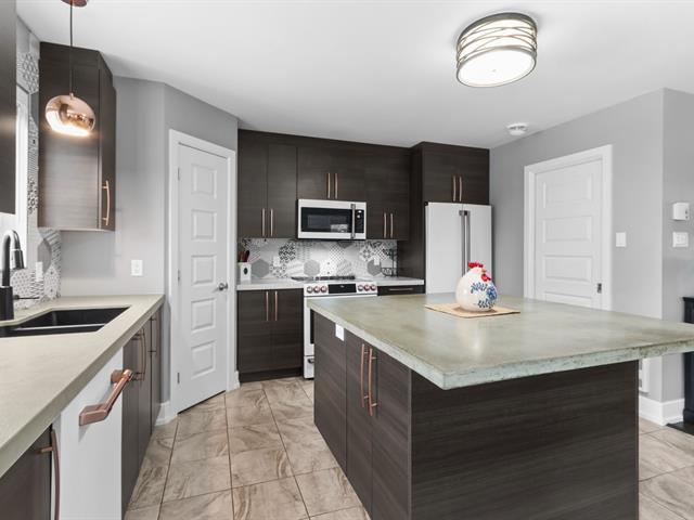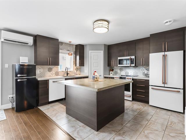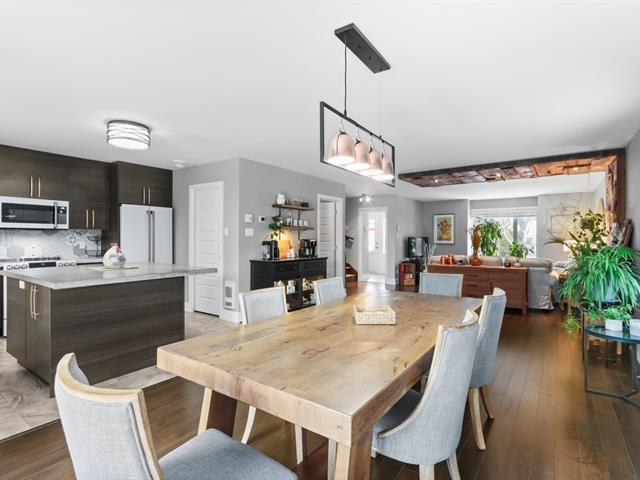 *RARE FIND Huge, luxurious, and inviting 2-storey condo 1730sf.Meticulously maintained, ideally located near public transportation, parks, and schools. Spacious and filled with natural light, from the ground floor to the upper level. You'll be impressed from the moment you walk in! The perfect place to entertain family and friends. Beautiful kitchen with an island and pantry, living room and dining area ideal for hosting multiple guests. 2 BDR with walk-in closets, 1 full bathroom and 1 powder room, 2 wall-mounted heat pumps, ample storage, a balcony, and parking space for 4 cars! Low electricity cost! 32 pictures on centris (56975376)
