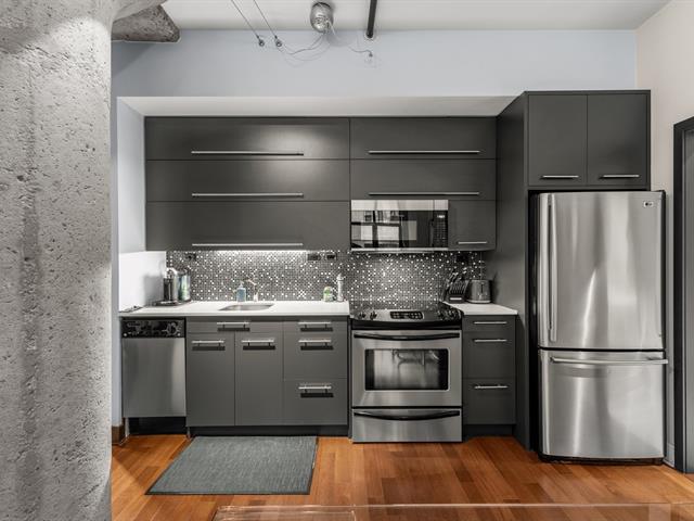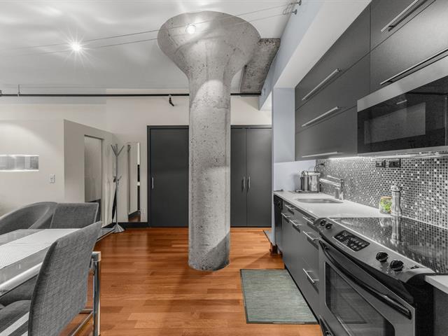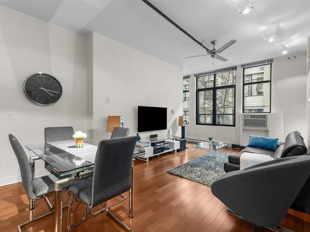 Turnkey condo in impeccable condition, located in the highly sought-after Saint-Henri neighborhood. Bright and functional living space featuring high ceilings, expansive windows, and superior soundproofing. Contemporary kitchen with quartz countertops and high-quality appliances included. Wall-mounted air conditioning and refined finishes throughout. The building stands out with fully renovated common areas, including a spectacular rooftop terrace with swimming pool, BBQ areas, and stunning city views. A desirable urban lifestyle close to services, public transit, and downtown. (53027953)