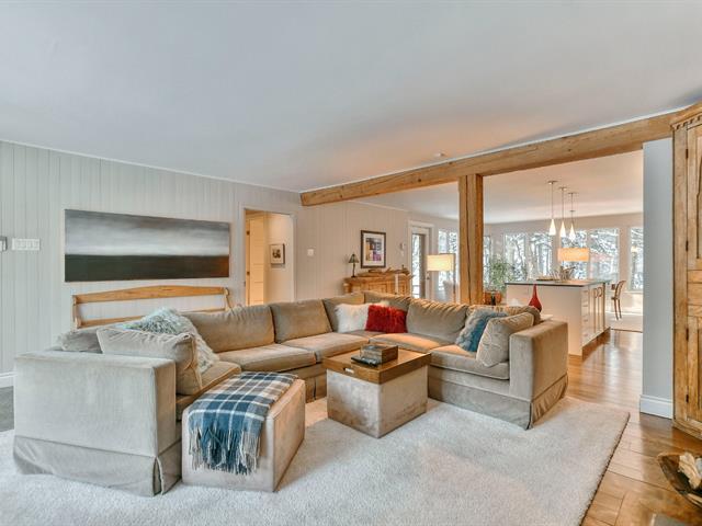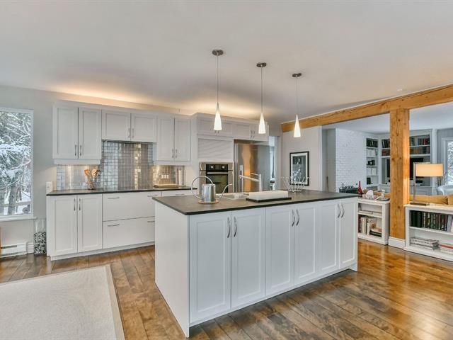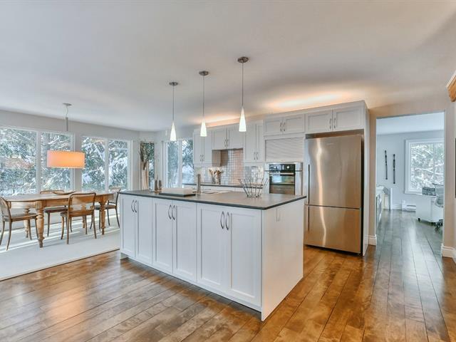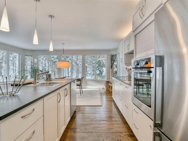 Superb, fully renovated charming property nestled in the prestigious Deauville estate in Sainte-Adèle, with possible lake access (annual fee). Warm, bright open-concept living area, large living room with wood-burning fireplace, dream kitchen with quartz, dining room with forest view. Primary suite with boudoir and huge walk-in, office or bedroom option, bathroom with heated floor. Wooded corner lot, back terrace and front balcony. (52366385)