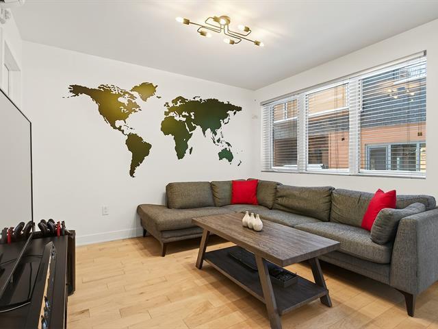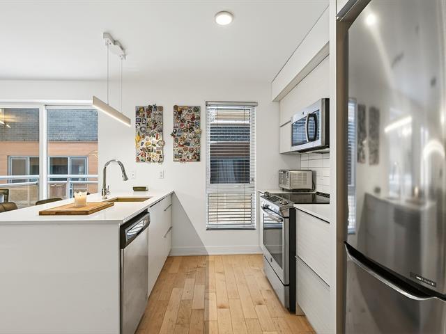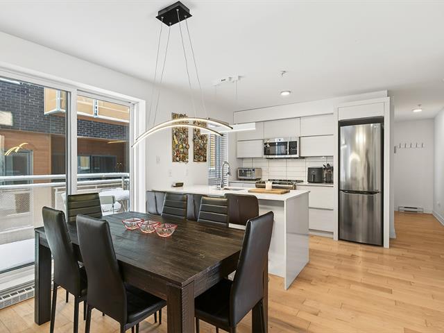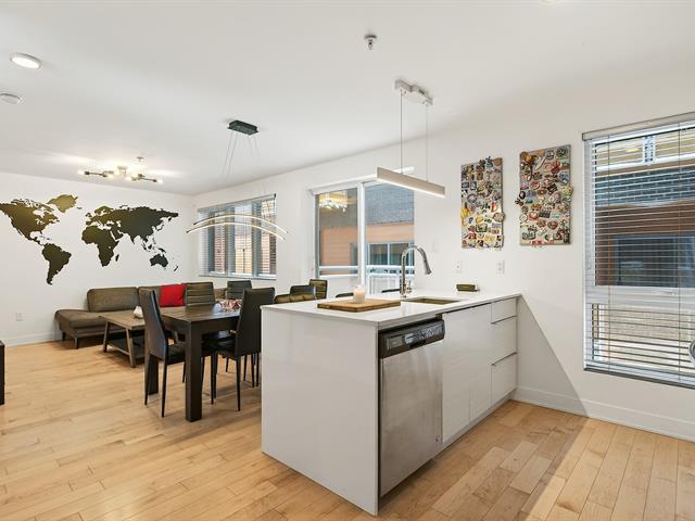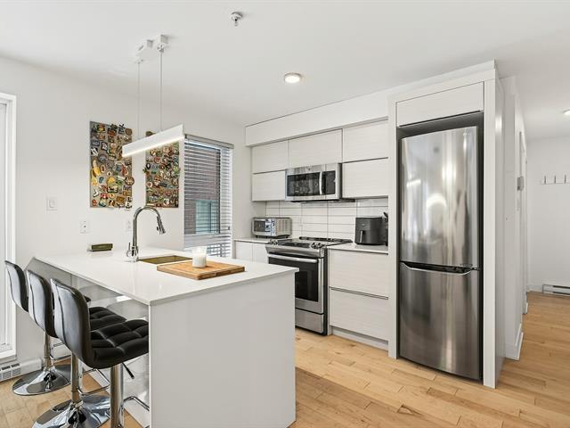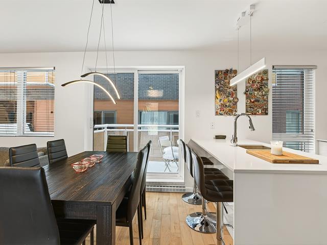 Offering an exceptional two-story layout, this condo stands out with its 3 bedrooms, 2 bathrooms, 2 garages, and 2 storage spaces--a highly sought-after combination. Located in the heart of the highly coveted Rosemont-La Petite-Patrie neighborhood, just a 10-minute walk from Molson Park and the magnificent section of Beaubien Street, you will enjoy a lively urban lifestyle surrounded by neighborhood shops, cafes, and services. The unit is in excellent condition and captivates from the moment you walk in with its light wood floors, brightness, and functional layout. Concrete and steel construction, a guarantee of quality. (54187973)