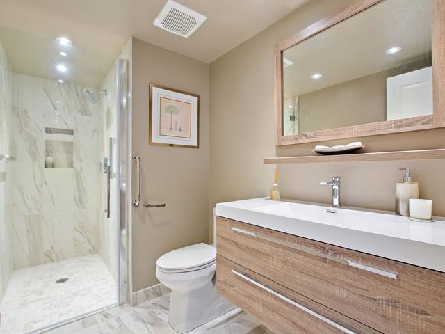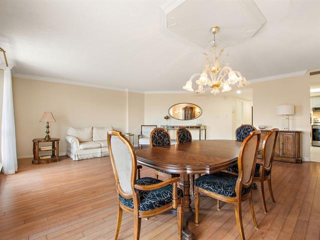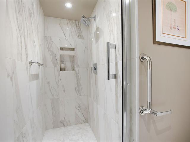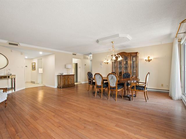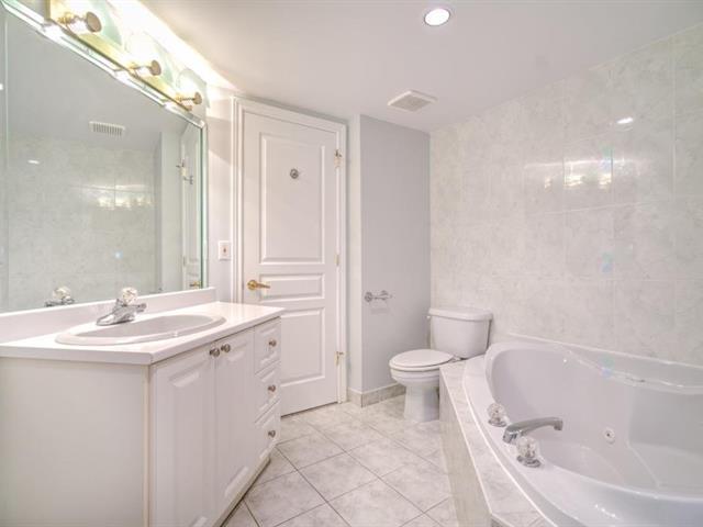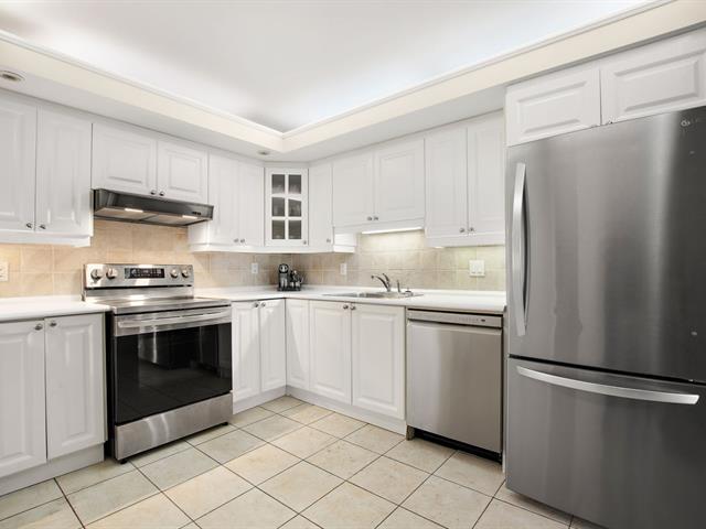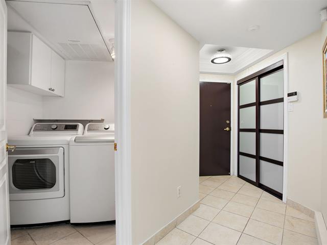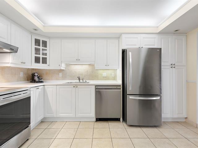 Welcome to VILLA PRINCESS VI, a superior-quality building in Saint-Laurent. Rare rear-facing unit, away from street noise, offering excellent soundproofing and exceptional southwest-facing natural light. Open-concept living and dining area, functional kitchen with breakfast nook and ample storage, spacious primary bedroom with walk-in closet and ensuite bathroom, second generously sized bedroom, and a beautifully renovated bathroom. Large balcony (200+ sq. ft.), two tandem indoor garages, and adjacent storage locker. Building features include gym, sauna, party room, concierge, and quick access to services, Place Vertu, metros, and more! (40064550)
