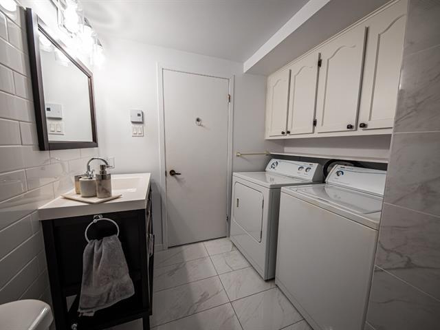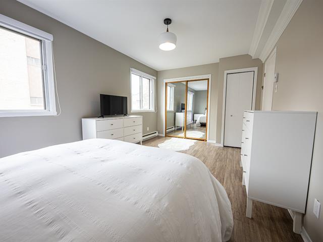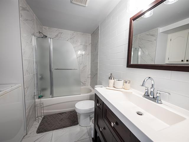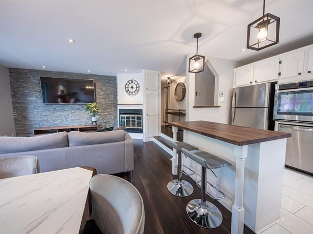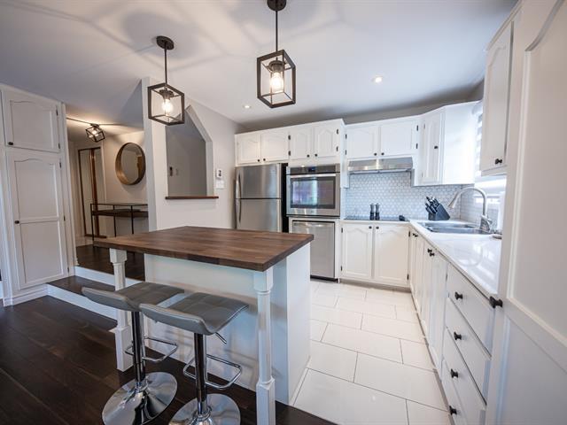 Bright, move-in-ready condo renovated in 2019, featuring laminate floors throughout with ceramic in the kitchen and bathroom. The kitchen offers quartz countertops and a butcher-block island. Two spacious bedrooms provide comfort and flexibility. Enjoy washer and dryer installation in the bathroom, heated indoor parking, and an indoor storage unit. The unit features two balconies. Ideally located; a 3-minute walk to Galeries d'Anjou, with easy access to public transportation and nearby amenities. (58212384)