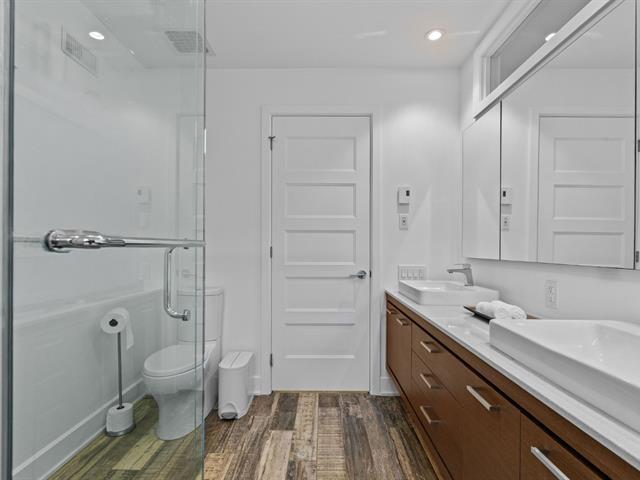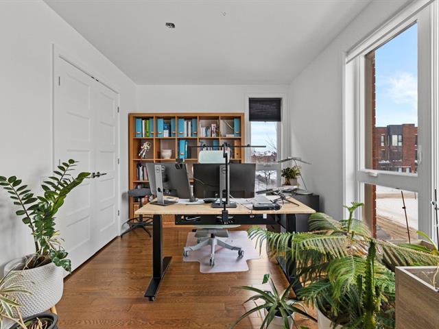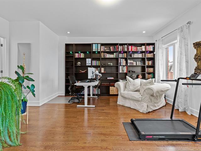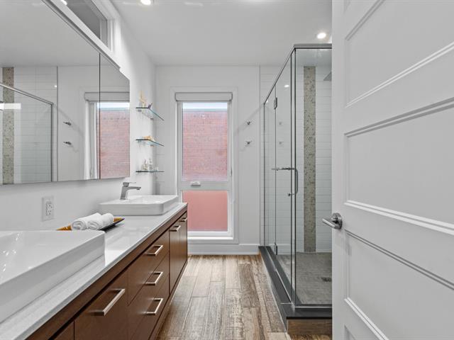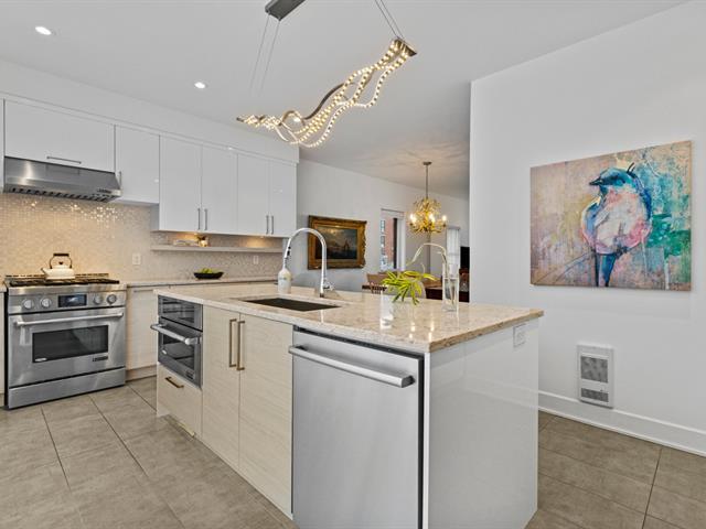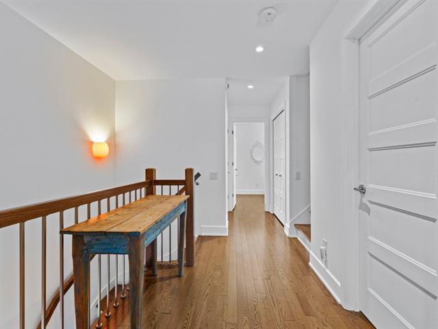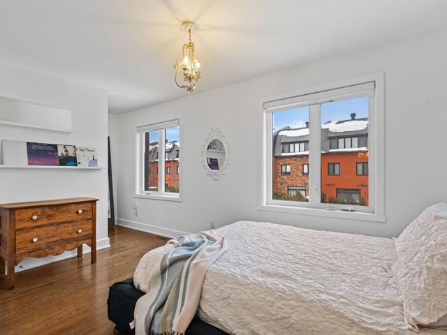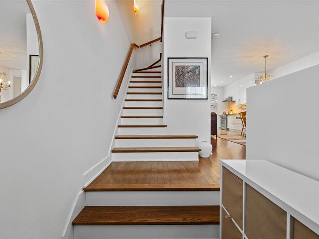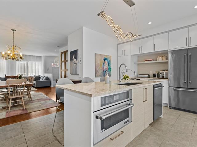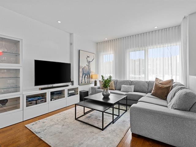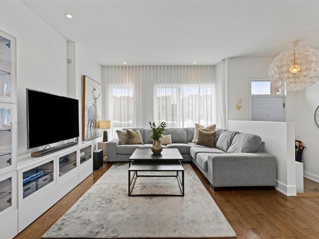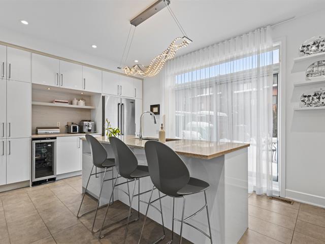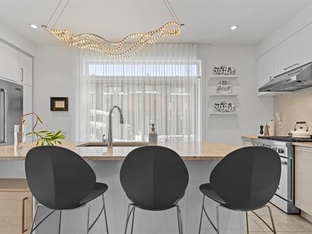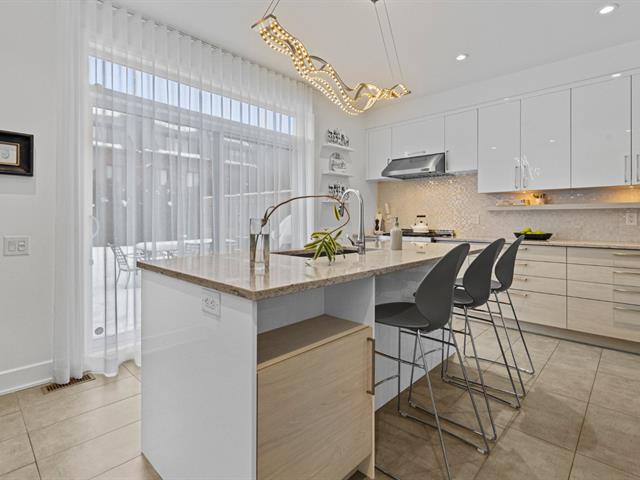 Experience modern luxury in this townhouse located in Bois-Franc's Square Kenneth-Patrick. Offering three bedrooms, two bathrooms and a powder room, the layout is both elegant and functional. Hardwood floors, large windows and clean architectural lines enhance the bright living spaces, while the well designed kitchen and thoughtful finishes create a refined atmosphere. The basement provides versatile space ideal for a home gym or playroom. The top floor features a spacious primary suite with ensuite bathroom and a private family room offering open views, creating a perfect retreat within the home. (38693696)