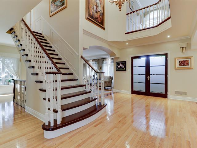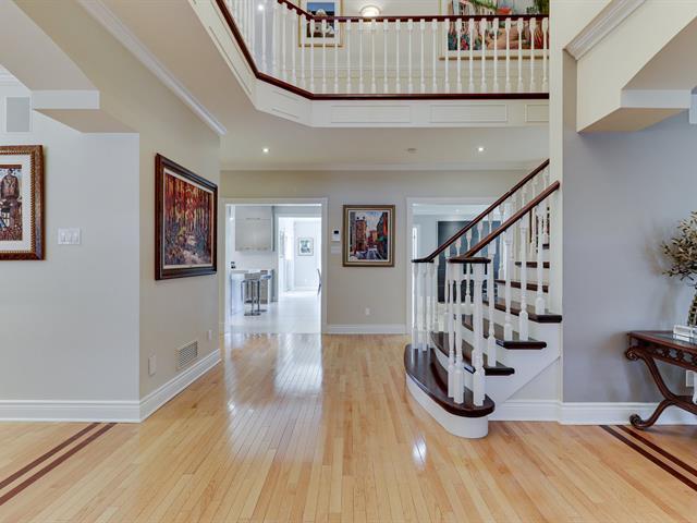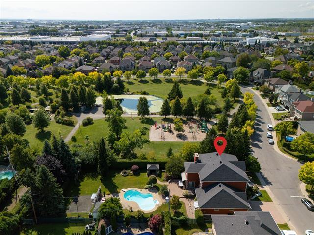 Rare opportunity to own a home on one of the nicest lots in Nouveau Saint Laurent right next to a park! A spectacular backyard surrounded by mature trees, no side neighbors, heated inground pool, ideal sun orientation with almost 20 000 sq ft lot- Beautifully maintained home with original owners offering a family room on ground floor, four bedrooms plus an office on second level, an intergenerational basement plus a four car interior garage- Located next to park close to services, REM, schools- A real oasis not to be missed! (40725105)