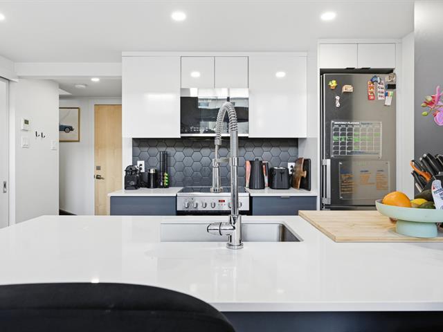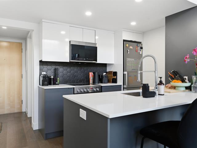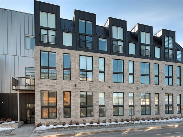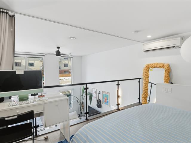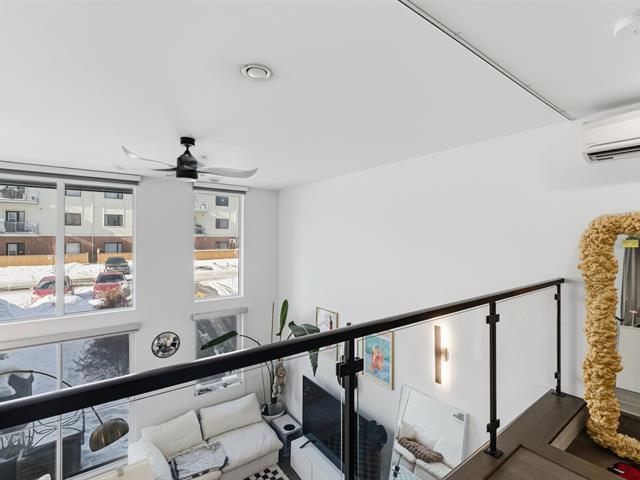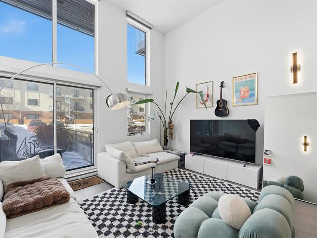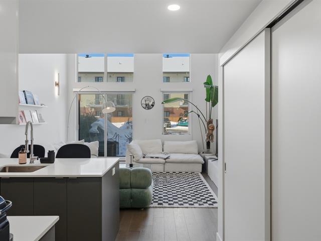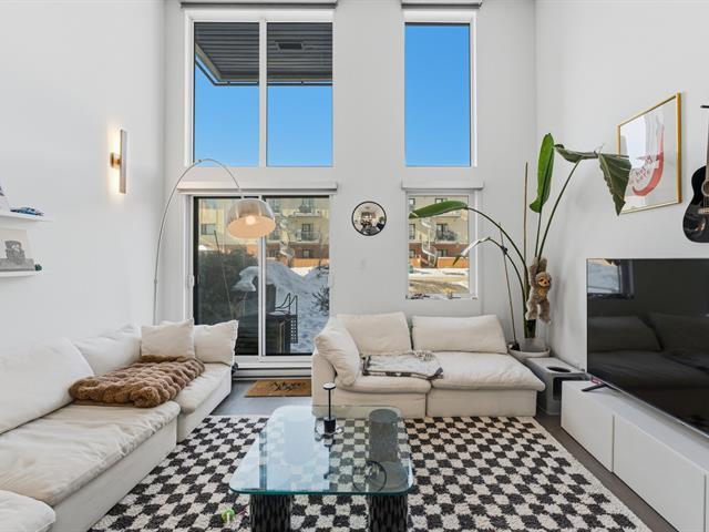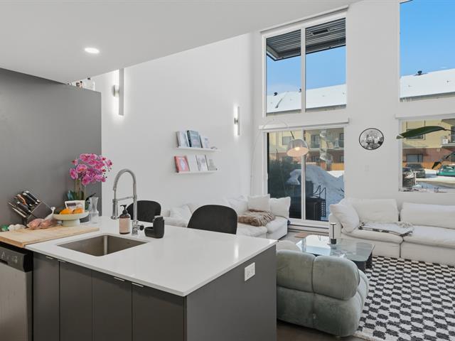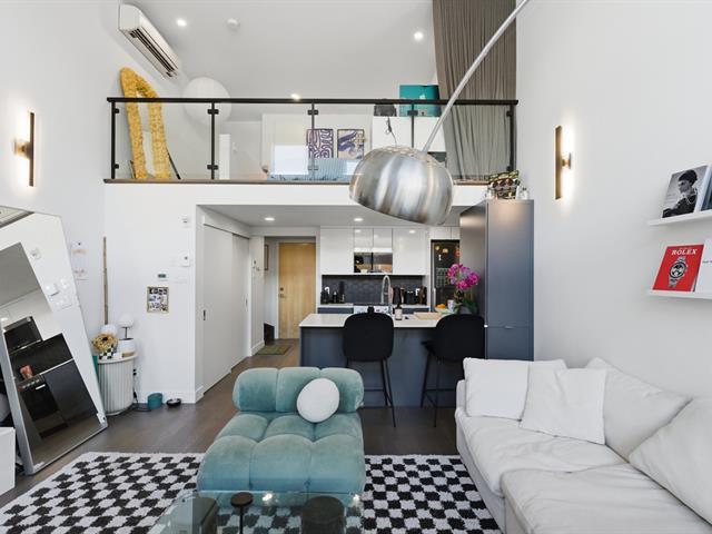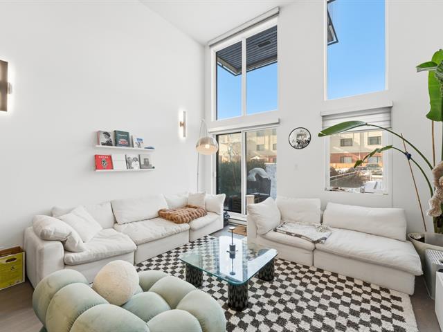Unit 114 -- Sololoft, 745 1e Avenue, Lachine. Bright and modern loft-style condo featuring one bedroom on a mezzanine, one bathroom, and a private patio. Soaring ceilings and oversized windows provide exceptional natural light throughout. Contemporary kitchen with island and generous storage space. Includes one indoor parking space and a storage locker. Built in 2021, Sololoft offers a sleek urban lifestyle steps from the Lachine Canal, waterfront parks, bike paths, cafés, public transit, and quick access to downtown Montréal, major highways, and the airport. (53533938)